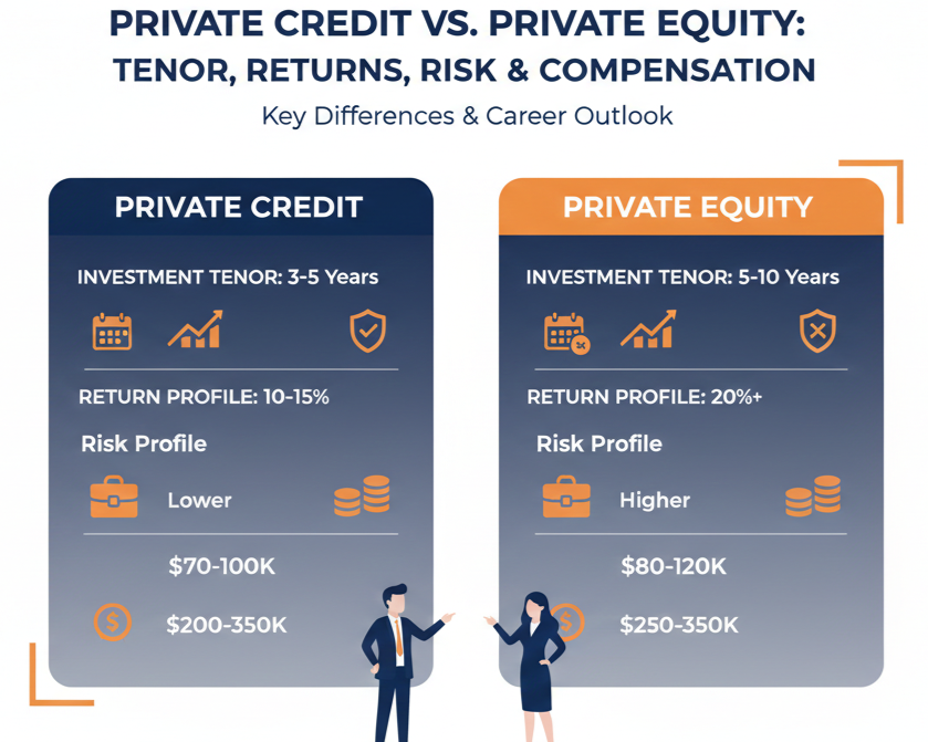 | Exit Opportunities | PE, Corporate Strategy, VC, HF | Direct lending career, PE credit, corporate banking, leveraged finance |